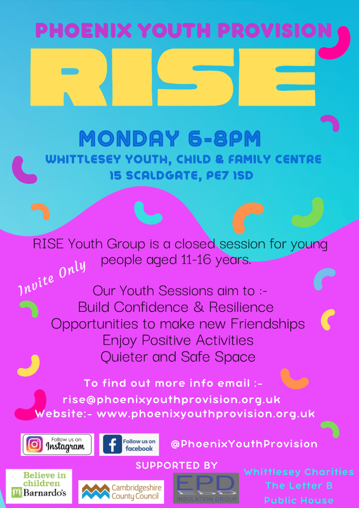 Please email the Rise team for further information :- louise.king@phoenixyouthprovision.org.uk